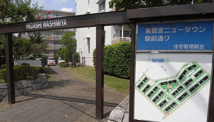 東鷲宮ニュータウン駅前通りは1982年11月に竣工した4-1~4-10号棟、6-1~6-5号棟、7-1~7-6号棟まであり、それぞれ5階建て総戸数580戸の大規模マンションです。