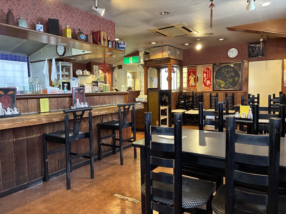 店内にはレトロな中国風のピンク系壁紙やランタン型の照明が飾られています。カウンター席とテーブル席があり、思っていたよりも広々とした空間が広がっていました。