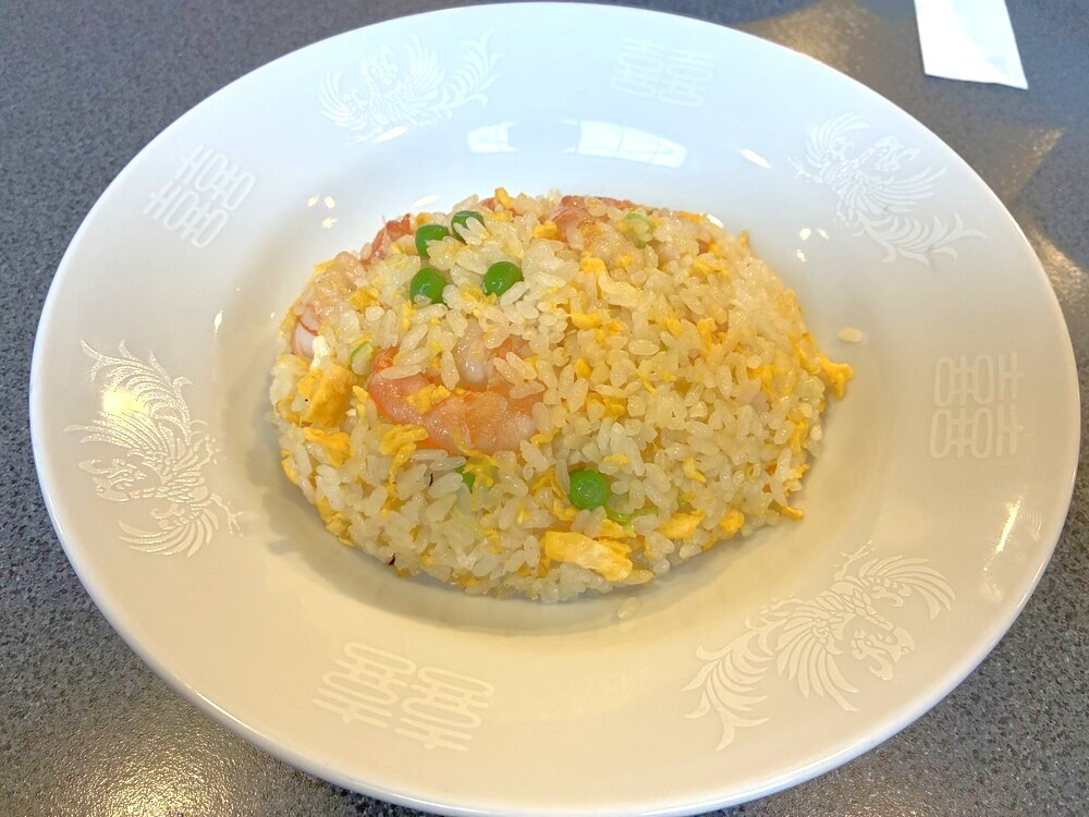 まずはエビチャーハンからいただきました。ぷりぷりのエビが食べ応えのあるサイズでいくつも入っています。しっかりとした味付けで、「これぞチャーハン」という王道の一品。