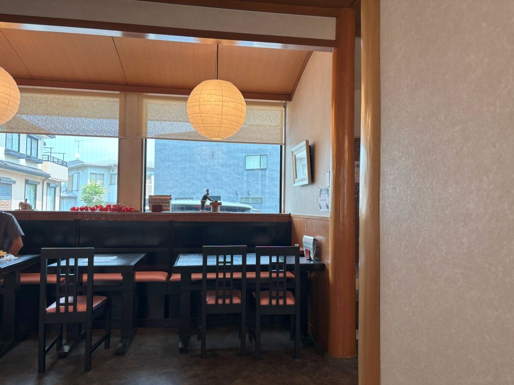 テーブル席からは外の景色が眺められます。大きな窓があると開放的な気分になりますよね。