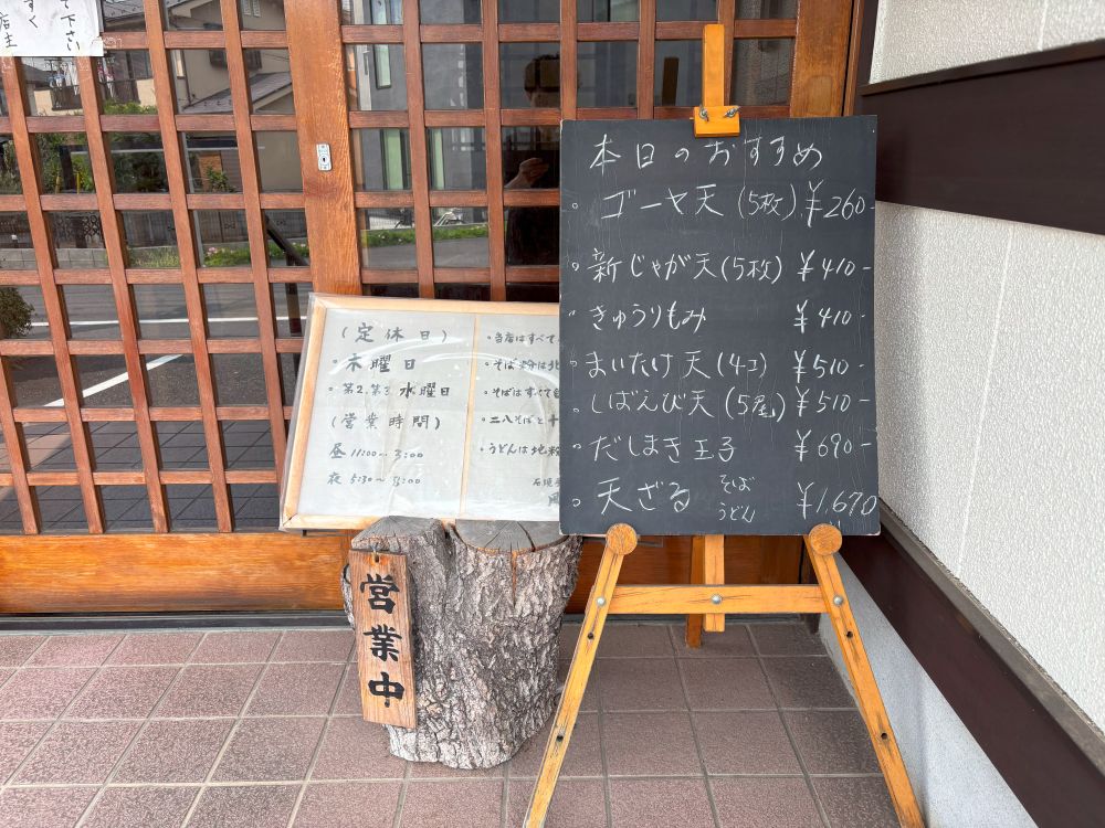 この日のおすすめにはゴーヤ天や新じゃが天、まいたけ天などが並んでいました。天ぷらのバリエーションも多く、惹かれるものがたくさん。