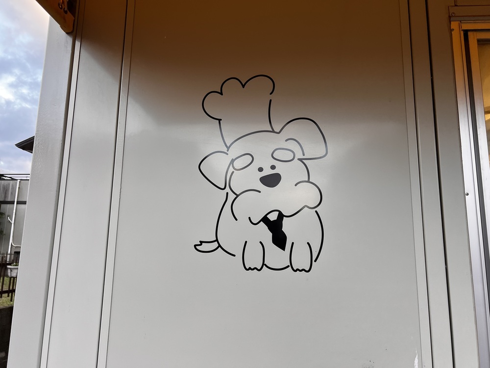 お店の前でまず目に入るのが、かわいらしい犬のロゴ。店主さんの愛犬がモデルになっており、やさしいタッチで描かれたロゴは、お店全体の雰囲気をそのまま映したような親しみやすさがあります。