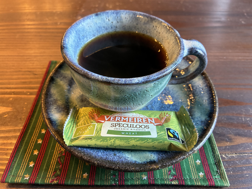 実際にいただいたのは「御珈琲」で、すっきりとした飲みやすさが印象的でした。苦みが強すぎることもなく、酸味もほどよいバランス。添えられたスペキュロスというビスケットとの相性も抜群。