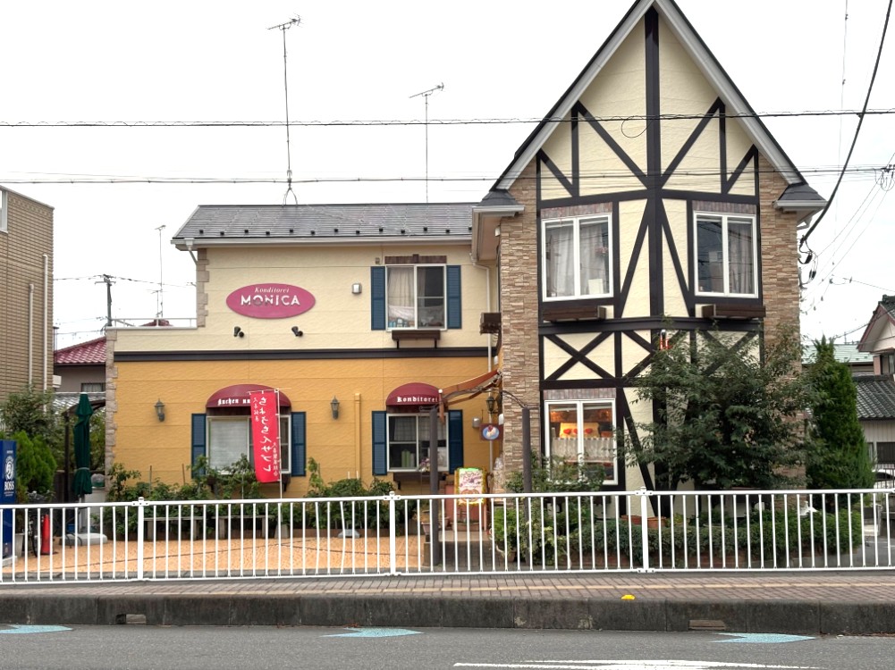 今回は、久喜駅から徒歩約20分、三角の屋根が特徴的な洋風の建物が目印の「ケーキの店モニカ」を訪問しました。