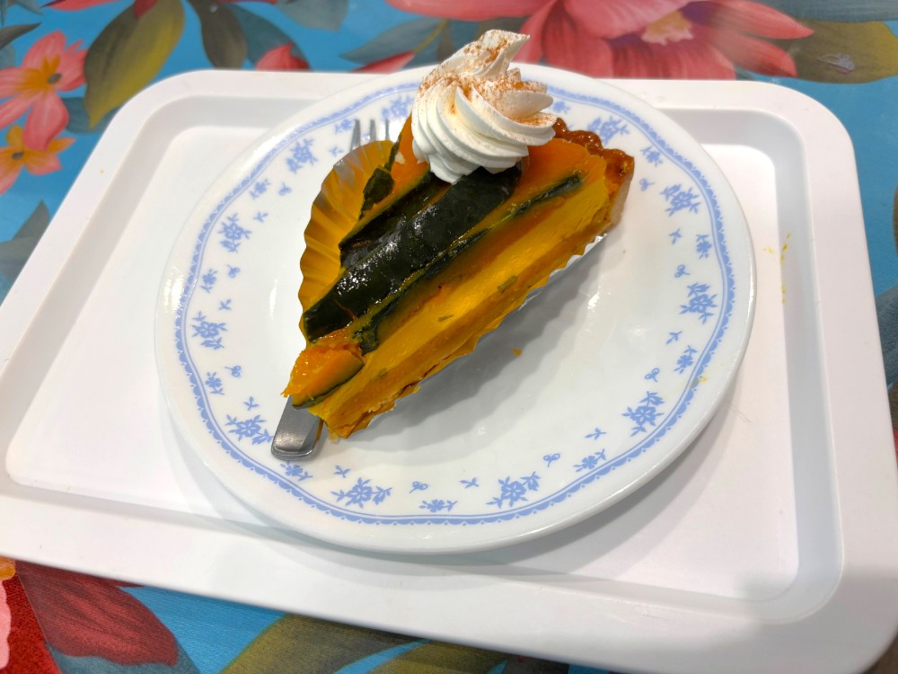 前回はメロンケーキをいただきましたが、今回は秋の味覚を楽しもうと、かぼちゃのタルトを選びました。