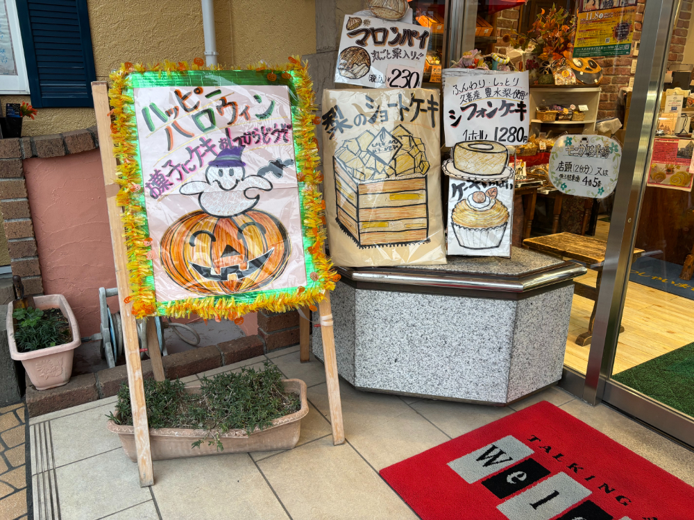 前回はパンやキャラクターケーキ、地元食材へのこだわりを中心に紹介しましたが、今回はハロウィン装飾や秋のフルーツタルト、そしてクリスマスケーキの予約開始と、季節ごとの変化や新しい情報を中心にお届けしました。