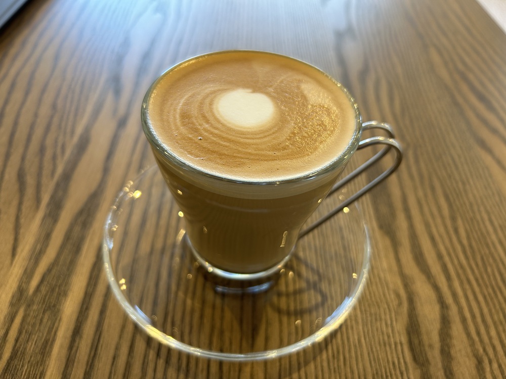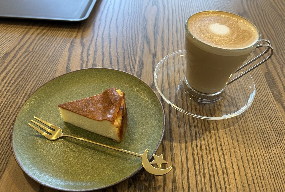濃厚なバスクチーズケーキの甘みを、キリッとしたラテが優しく包み込みます。香りも豊かで柔らかな口当たりは、チーズケーキとの相性抜群でした。
