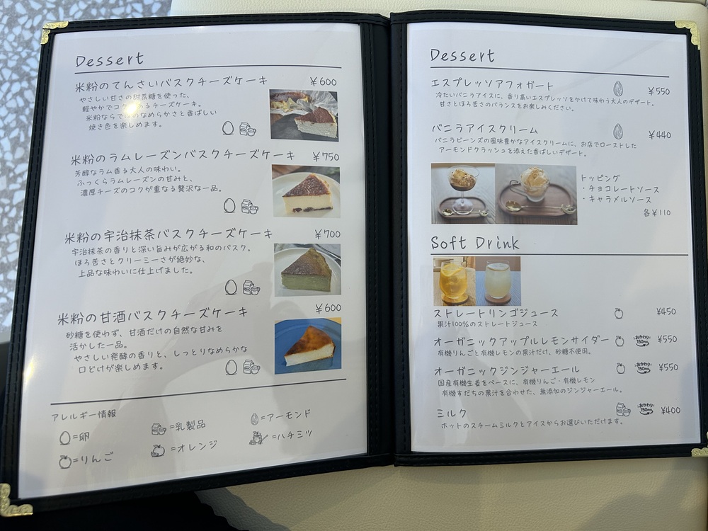 まず注文したのは、米粉のてんさいバスクチーズケーキ(600円)。