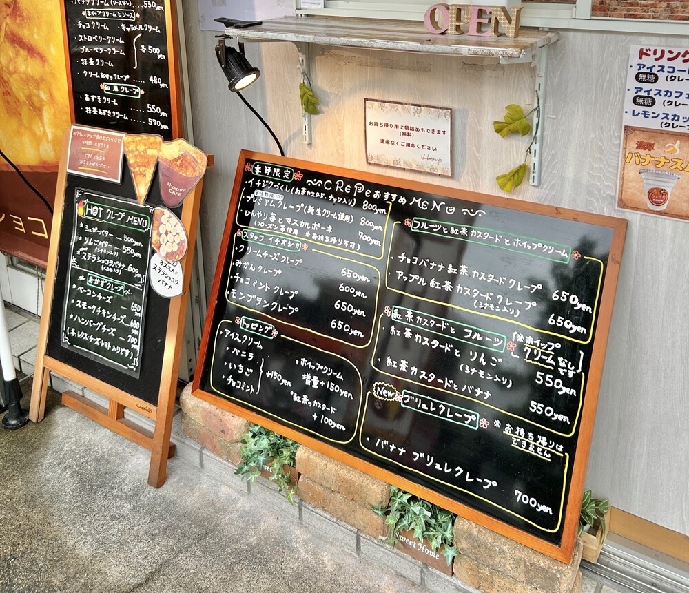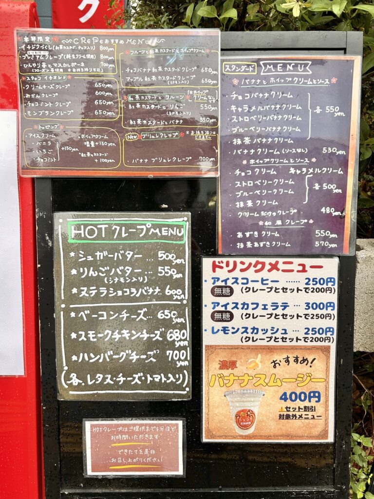 メニューは定番から季節限定まで豊富で、価格は500円から800円ほど。地元農園で採れたいちじくを使った期間限定クレープなど、旬の味覚を楽しめるのも魅力です。