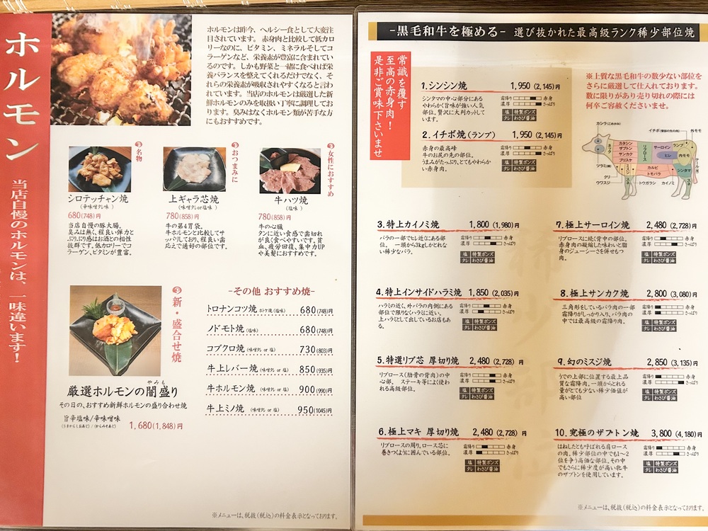 稀少部位焼、ホルモン系はさまざまな部位を取り扱っています。他店にはないような珍しいメニューに出会えるかもしれません。