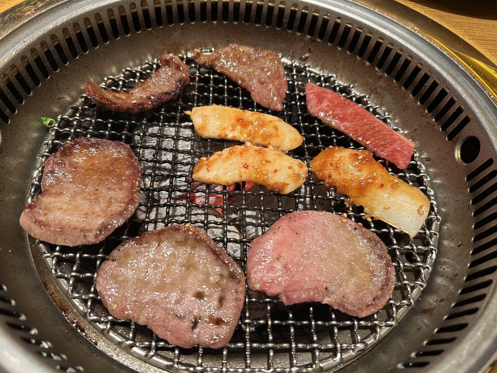 炭火亭の焼肉の軸にあるのは、最高級ランクの黒毛和牛。上カルビと間違えるほどのクオリティで、お米でもビールにも合う味付けです。