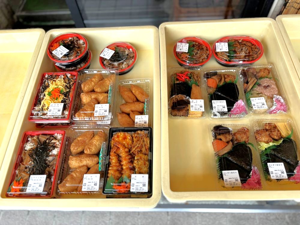 かんぴょう巻きや太巻き、さまざまな種類の饅頭、そしてお弁当。昔ながらの惣菜屋さんのようでもあり、和菓子屋さんのようでもある。まさに“街の台所”といった雰囲気です。