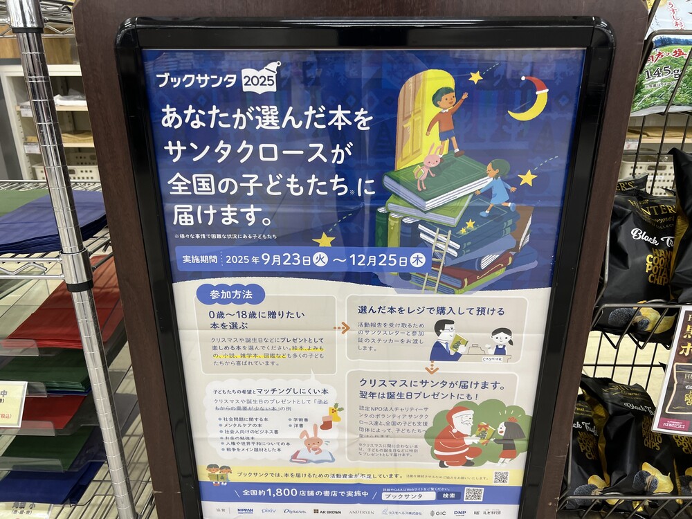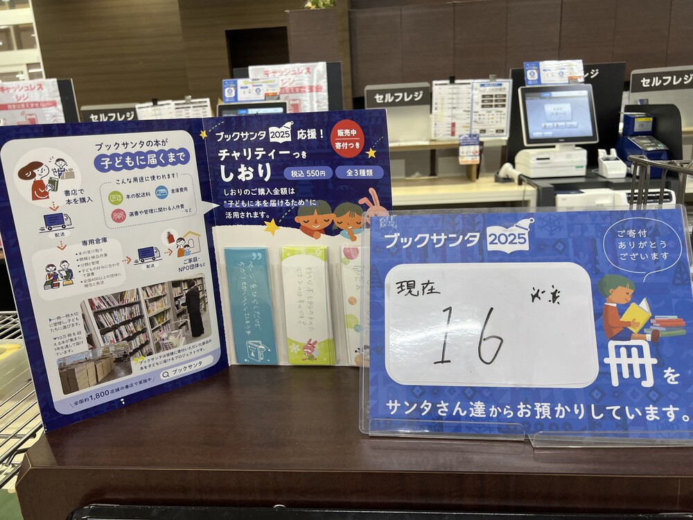 久喜市の蔦屋書店には全国的に広がる「ブックサンタ」の活動も展開されています。