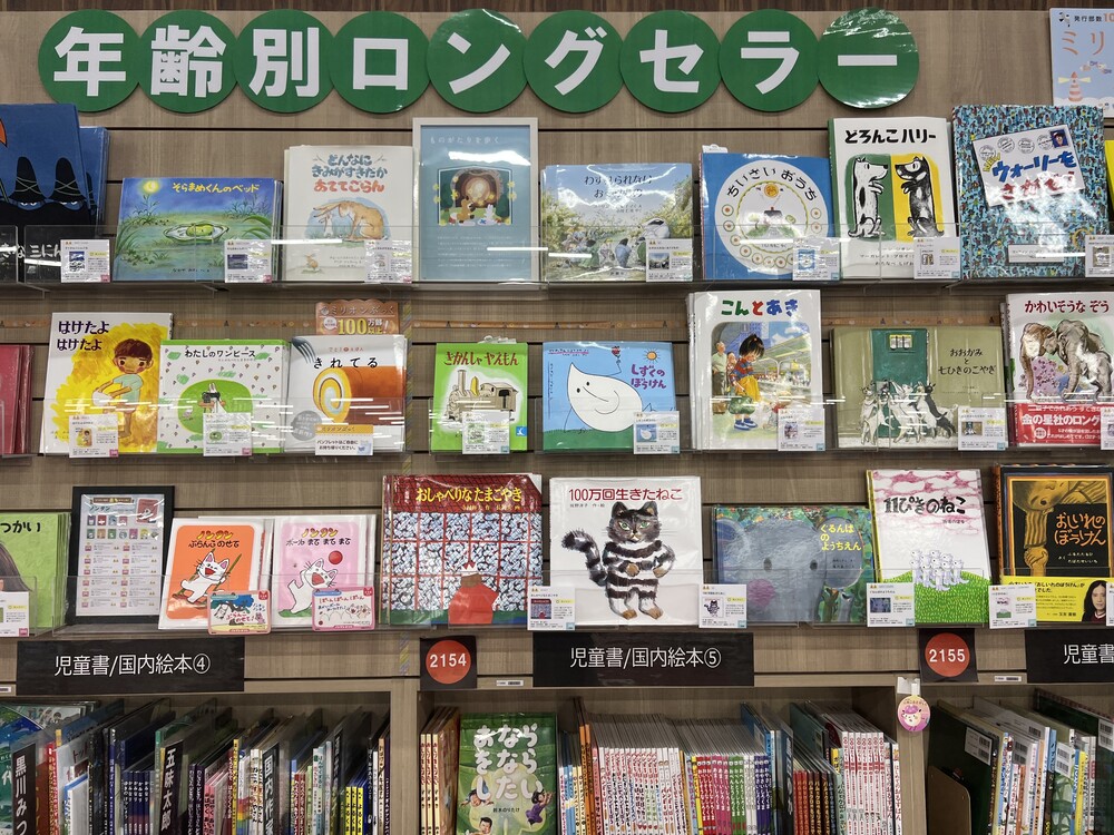 ほかにも、年齢別の絵本コーナーなど、大人から子どもまで楽しめる絵本がもりだくさんです。