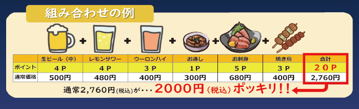 2,000円払えば、2,000円以上の呑み食べがお得にできるという、お財布にも食欲にも嬉しい催しです。