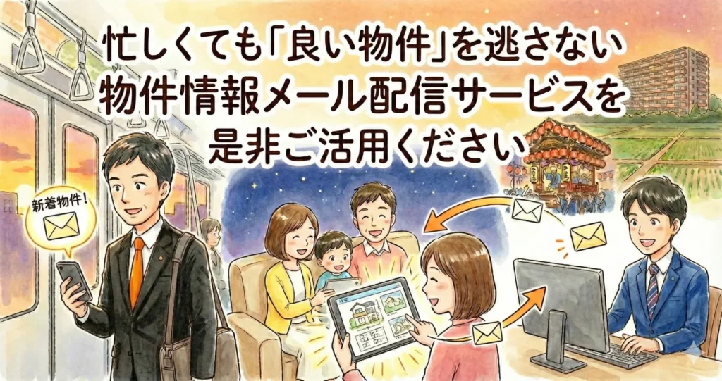 あらかじめご希望のエリア・予算・広さなどの条件を登録しておくことで、その条件に合った物件情報だけが届きます。自分で条件を入れ直しながら何度も検索したり、関係のない物件まで延々と眺め続けたりする負担が減り、限られた時間で効率よく住まい探しができます。